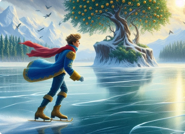 prince was ready to make any preparations to go to the island. But the youngest had an idea. He waited for winter and for the lake to freeze over so that he could skate to